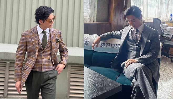 남궁민은 평소 양복에 관심이 많아 천변의 양복을 직접 사비로 제작해 맞췄다고 말했는데요. 각각의 미묘한 차이점이 느껴지는 체크 무늬 자켓과 쓰리 피스 수트의 묘한 조합이 천변 그 잡채인데요!!