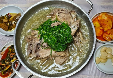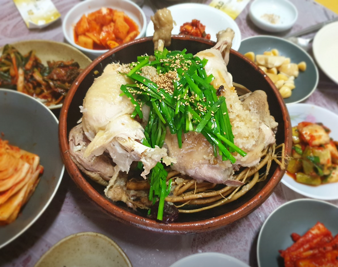 ▶ 토종닭백숙 – 인삼과 대추를 넣어 푹 끓여낸 깊고 진한 국물의 보양식
