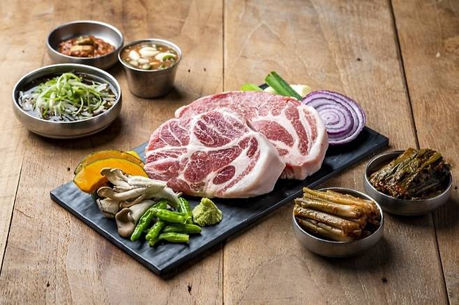 대표메뉴인 한판 세트는 삼겹살, 목살, 항정살, 가브리살 등 다양한 부위를 한 판에 즐길 수 있는 메뉴로 김종국 씨가 좋아하는 만큼 고기를 좋아하는 팬들 사이에서도 대인기랍니다.