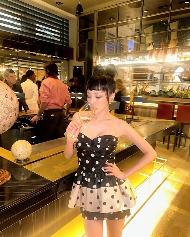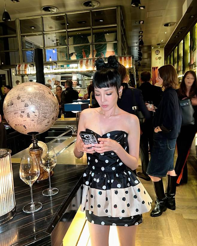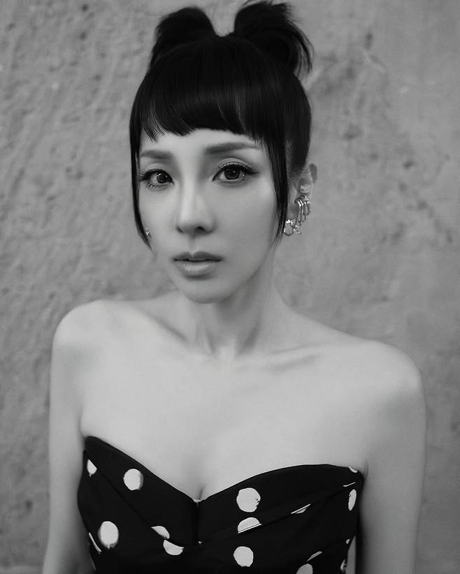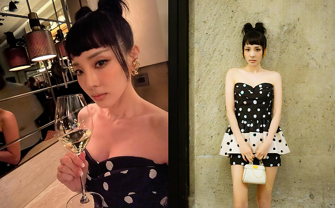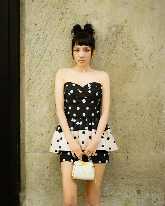 사진 속 산다라박은 흑백의 도트 무늬가 돋보이는 튜브톱 미니드레스를 입고 발랄하면서도 유니크한 매력을 한껏 뽐냈습니다.