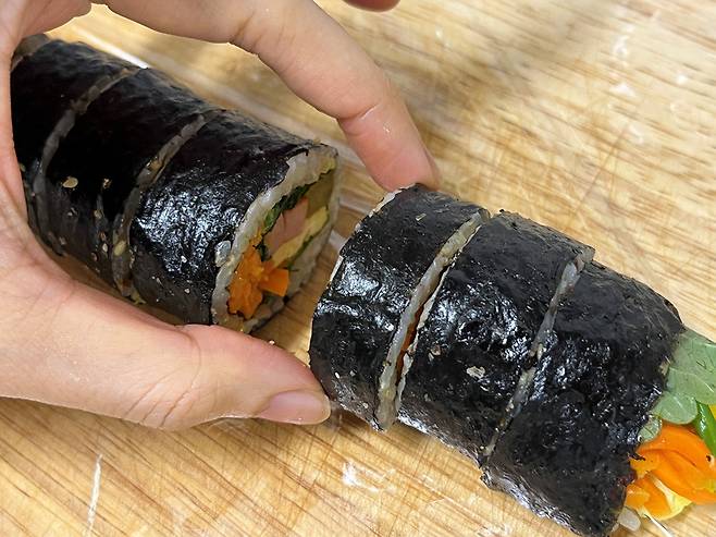 김밥은 보통 실온에 잠시 두거나, 1~2일 후에 먹는다면 냉장고에 넣어두는 게 일반적입니다. 하지만 그렇게 보관하면 몇 시간만 지나도 밥이 마르고 김이 눅눅해져 버립니다. 특히 냉장 보관 시에는 밥이 딱딱해지고 속 재료의 수분까지 빠져버려, 처음의 맛이 거의 안 납니다.