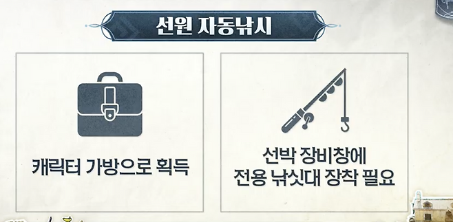 낚시 콘텐츠에도 변화가 찾아온다. 개선된 ‘어류도감’을 통해 소숫점 두 자리까지 물고기 크기를 구분할 수 있게 되며, 주간 낚시대회를 통해 매 주 대회 주간에 선정된 다섯 종의 물고기 중, 가장 큰 물고기를 낚은 모험가에게 보상을 지급한다. 또한, 항해 도중 선원을 이용해 자동으로 낚시를 진행하는 개편 또한 이뤄질 전망이다.