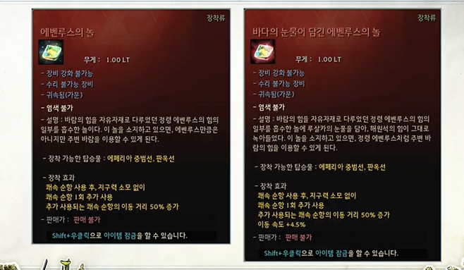 또한 해원석의 능력치 폭이 절반으로 줄어든다. 장비 슬롯에 장착되는 바다의 눈물이 담긴 에벤루스의 놀이 추가된다. 해원석과 에벤루스의 놀과 함친 효과를 기대할 수 있다. 마고리아의 기원 10개로 제작가능한 루살카 해원석이 필요하다. 에벤루스의 놀은 내구도 없이 사용 가능하다.