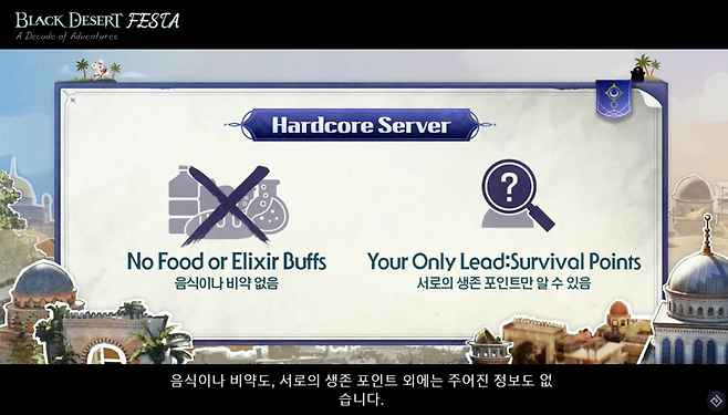 한편, 오후 4시부터 진행되는 ‘칼페온 연회’에서는 앞으로 업데이트될 다양한 콘텐츠에 대한 소개가 이어졌다. 최근 50초 분량의 무기 티저 영상을 통해 공개한 바 있는 신규 클래스 ‘데드아이’ 또한 소개됐다. 그 외에 시즌 서버 개편, 신규 생활 액세서리 등 굵직한 업데이트 계획이 발표됐다.