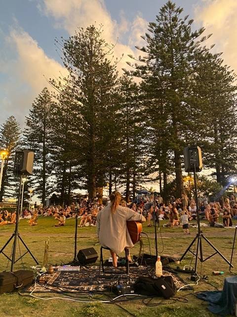 | ▲ 여행하며 길거리에서 버스킹을 하거나 공동체 마을에서 작은 콘서트를 열기도 했다. 호주 바이런베이에서 버스킹하는 모습 |