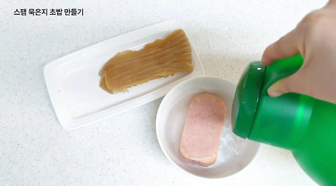 1) 스팸은 뜨거운 물에 담가 불순물을 제거하고 사용합니다.