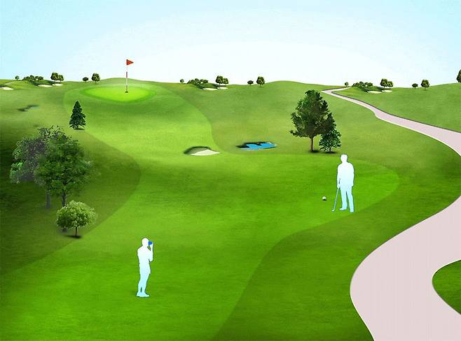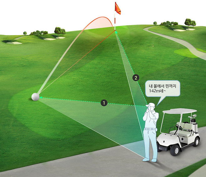 FineCaddie 모드는 삼각 측량 방식을