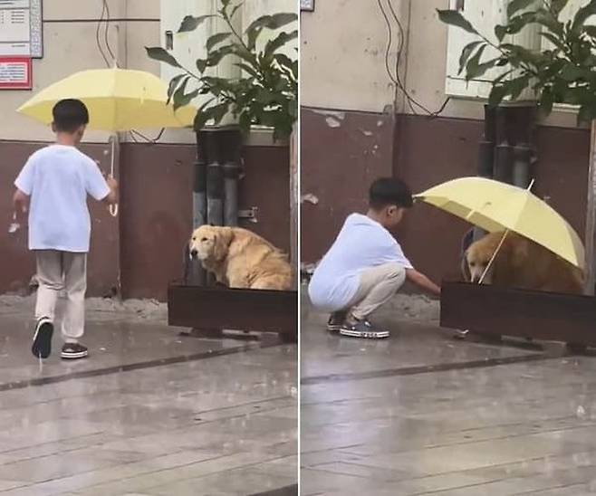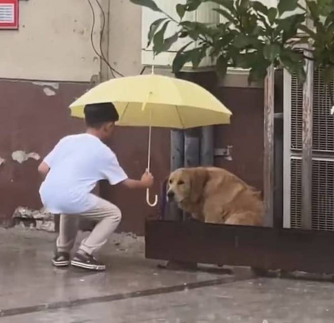 유기견은 어린 소년이 씌워준 우산 덕분에 비를 더 이상 맞지 않을 수가 있었는데요. 뿐만 아니라 힘든 날이 오면 이를 견뎌낼 수 있는 힘을 얻게 되었다는 후문입니다.