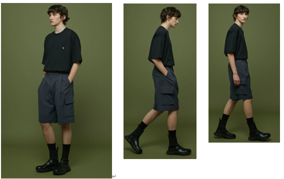 활동적이고 시원한 느낌을 줄 수 있는 반팔티와 반바지 카고쇼츠를 활용한 코디입니다.