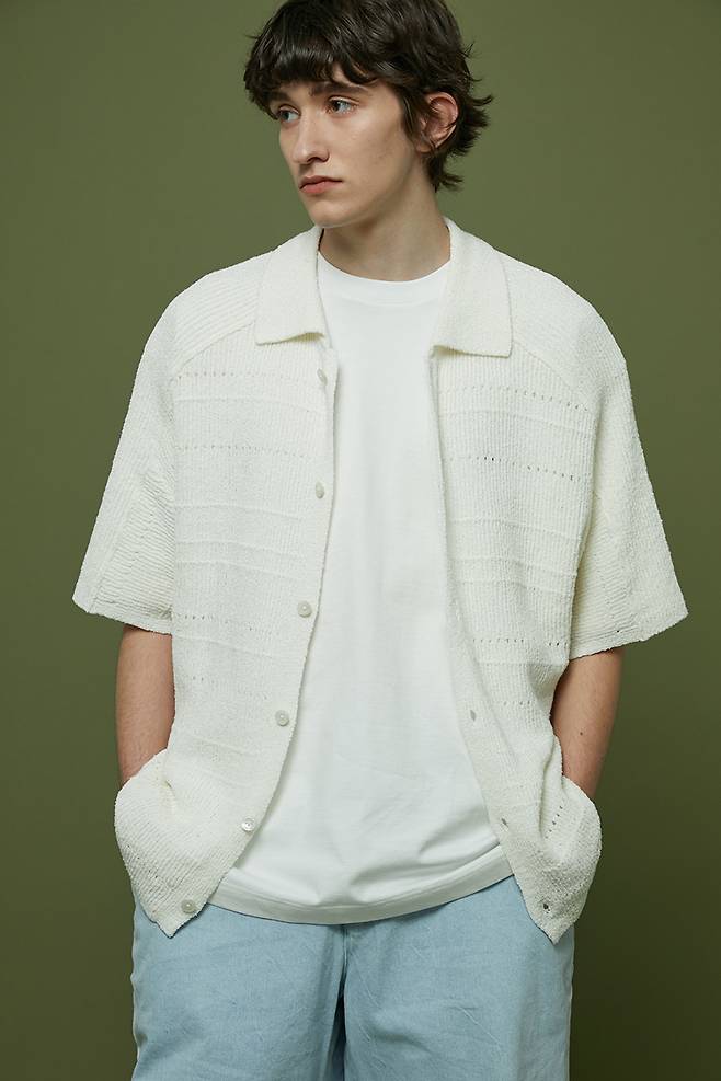 청량한 터치감의 수피마 코튼 부클원사 사용, 셔츠 형태 디자인으로 다양한 연출 가능,남녀 모두 착용 가능