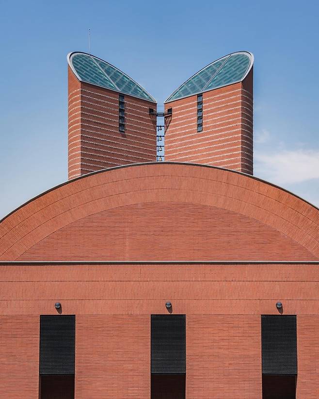 스위스 건축 거장 마리오 보타가 설계한 ‘남양성모성지’는 그의 특징인 강력한 형태감과 붉은 벽돌이 돋보이는 건축물이야. 숲과 초원, 흙길이 조화를 이뤄 천주교 신도가 아니어도 누구나 산책로를 따라 휴식할 수 있지. 새소리만이 가득한 곳에서 카메라 뷰파인더로 건축물을 바라보고 있으면 온 세상이 아름다워 보여.
