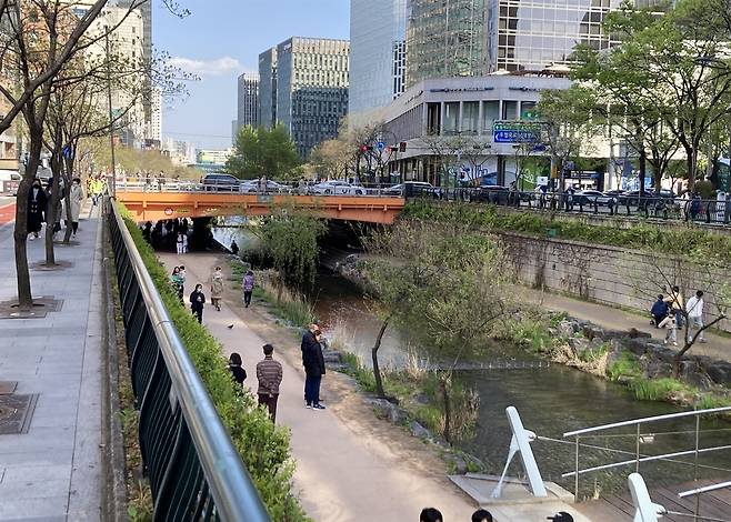| ▲ 광화문 인근 청계천 산책로의 풍경 |