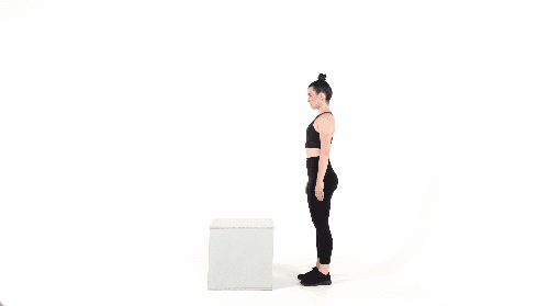 스텝박스나 오를 수 있는 도구 앞에 서서 시작합니다. 왼발을 먼저 올리고 이어 오른발을 올려 도구 위에 완전히 올라섭니다. 왼발을 먼저 내려 바닥에 두고, 이어 오른발을 내려 원래 자세로 돌아옵니다. 발 순서를 바꿔가며 반복합니다.
