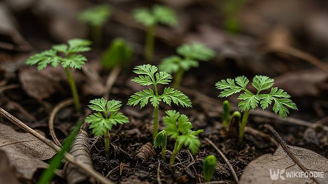 전호는 다른 식물과 자라는 방식부터 다르다. 대부분의 식물이 3월 이후 햇볕이 따뜻해질 때 싹을 틔우지만, 전호는 정반대다. 10월에 싹이 나고 추운 겨울을 땅속에서 보내며, 눈 속에서도 잎을 유지한다. 1월부터는 땅 위로 여린 순이 올라오기 시작한다.