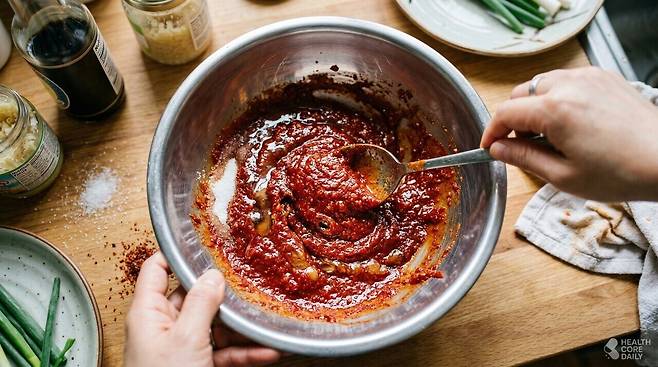 떡볶이 소스는 고추장이 기본이다. 고추장 100g에 들어 있는 탄수화물은 약 40~50g인데, 단맛을 내기 위해 설탕과 물엿이 추가로 들어간다. 설탕과 물엿은 몸에서 거의 즉각적으로 흡수되는 단순당이다. 혈당을 빠르게 올리는 떡 위에 이 소스가 듬뿍 배어 있으니, 떡 한 점을 먹을 때마다 소스의 당분까지 함께 흡수하는 구조다. 일반적인 떡볶이 한 그릇 소스에 들어가는 설탕만 해도 4~6 스푼에 달하는 경우가 많다.