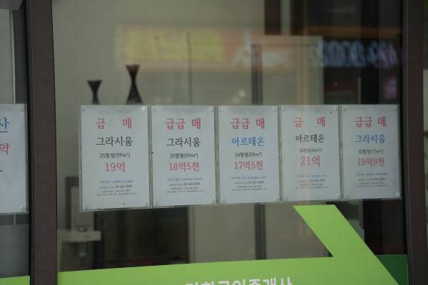[땅집고]수도권지하철 5호선 상일동역 인근 상가단지. 공인중개업소 유리창마다 ‘급매’, ‘급급매’ 전단지가 나붙어 있다. 강남 3구(강남ㆍ서초ㆍ송파)에서 시작한 아파트값 하락세가 강동구까지 번지며 동남권 전체 집값이 조정 국면에 진입했다. 그동안 견조한 흐름을 보이던 강동구 집값은 지난해 2월 이후 1년 1개월(56주) 만에 하락 전환했다. 지역 시세를 견인하던 이른바 ‘대장 아파트’ 호가조차 한 달 사이에 최대 3억원 가까이 내려 앉았다.