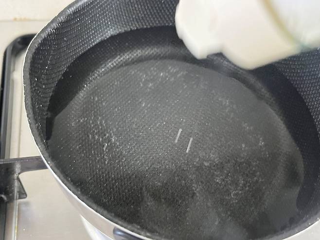 두 번째 방법은 바로 소금물에 살짝 데치는 것입니다. 끓는 물에 소금 1/2스푼 정도 넣어 주세요.