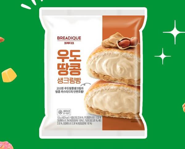 편의점 GS25에서 만날 수 있는 브레디크 브랜드의 ‘우도땅콩 생크림빵’은 제주도 여행 시의 필수 코스인 우도의 특산물 땅콩으로 맛을 낸 제품이다. 고소한 우도 땅콩이 들어간 묵직한 생크림을 빵 안에 가득 넣은 제품으로, 냉장 상태에서 차갑게 먹으면 더 맛있게 즐길 수 있다. 땅콩 크림 특유의 단짠맛과 고소한 풍미를 입안 가득 느낄 수 있을 것이다. 본 제품의 판매가는 3,400원이다.