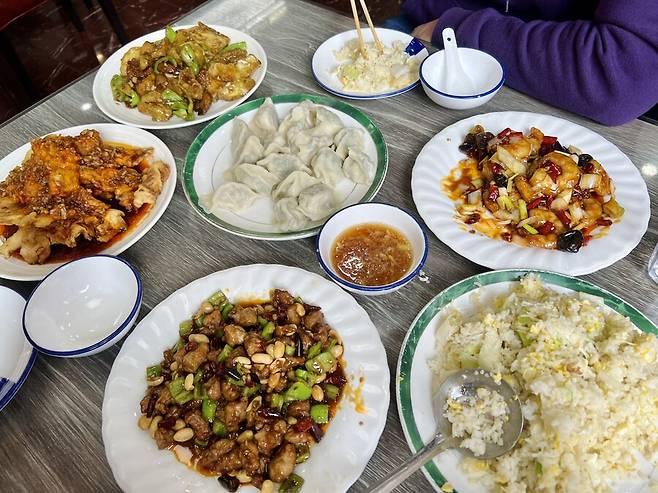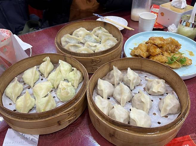 심양 노변교자(老边饺子 메뉴는 .. 기억이.. 양고기, 돼지고기, 새우부추 궈바로우 )