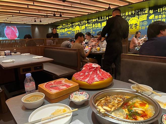 파빌리온 하우 (贺牛) 무한리필인데 금액대 따라 두리안 회도 무힌리필임.. 전 저렴한 199짜리했으며 물은 에비앙 술 커피(스벅)무한리필