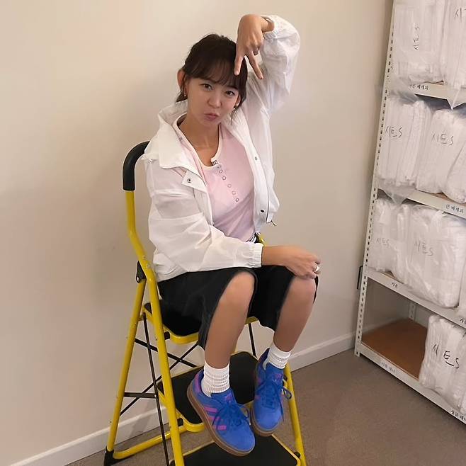 또 다른 컷에서는 화이트 아우터에 캐주얼한 티셔츠와 스니커즈를 매치하며 활동적인 에너지를 드러냈어요.