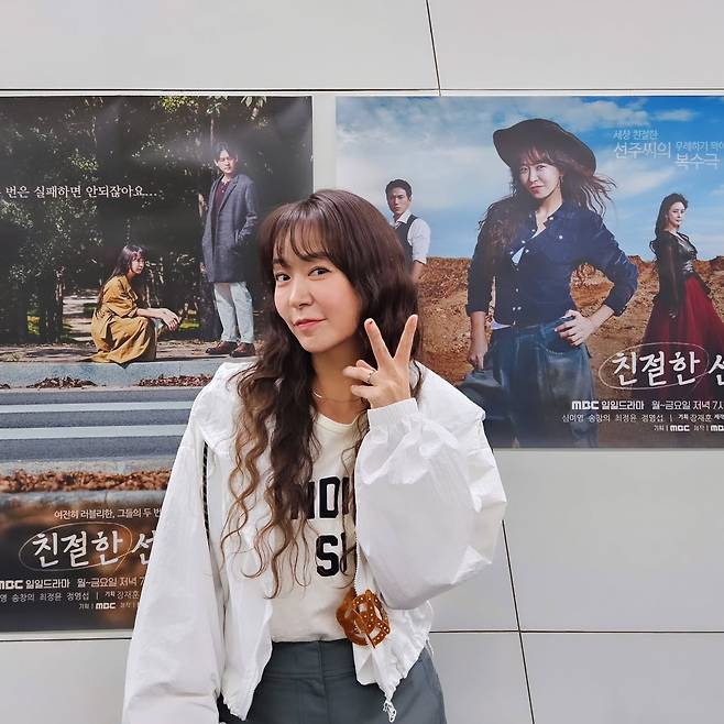 긴 웨이브 헤어와 장난스러운 브이 포즈는 극장 포스터 앞에서 배우다운 존재감을 자연스럽게 이어가고 있었죠.