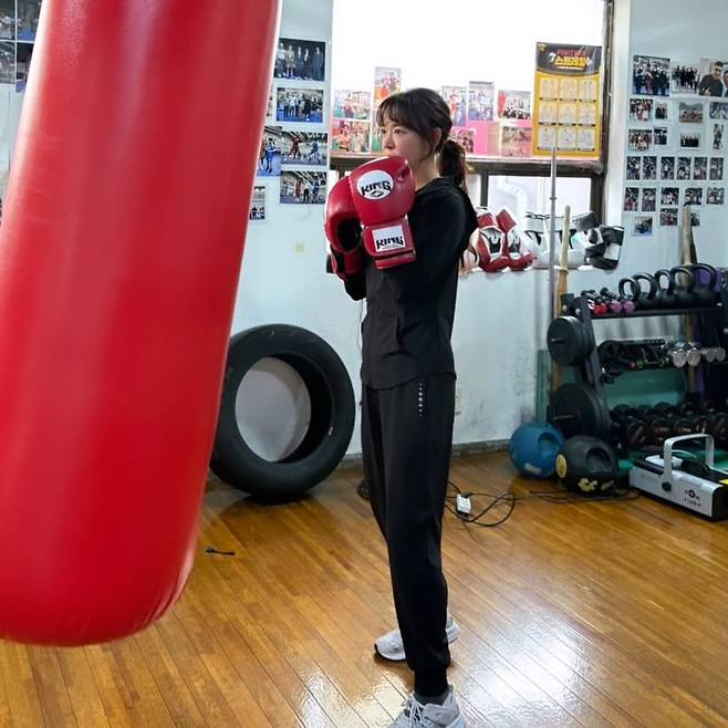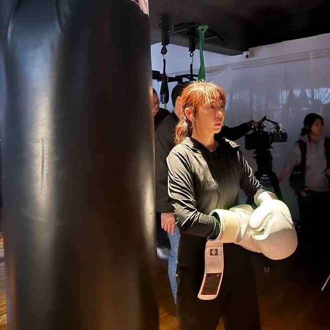 블랙 트레이닝복과 글러브를 낀 채 샌드백을 바라보는 눈빛은 집중 그 자체였고, 그 태도만으로도 스스로를 단련해가는 과정을 엿볼 수 있었어요.