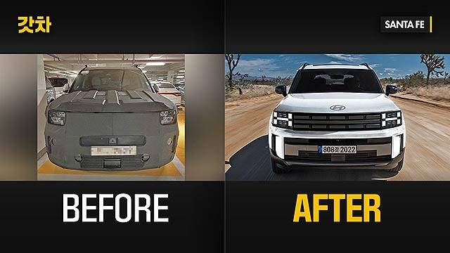 싼타페 풀체인지 위장막 vs 예상도