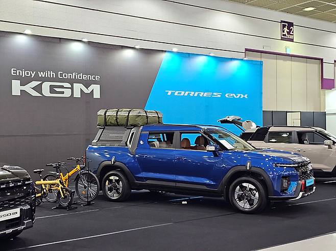 KGM은 전시 부스를 통해 아웃도어 활용성과 상용 적재 기능을 결합한 전기 픽업 ‘무쏘 EV’, 공간 활용성과 전기차 효율성을 강조한 ‘토레스 EVX’를 소개하고 있다. 아울러 무선 충전 시스템, 전기 자전거, 전동 공구 등 전동 모빌리티 관련 장비도 함께 전시한다.