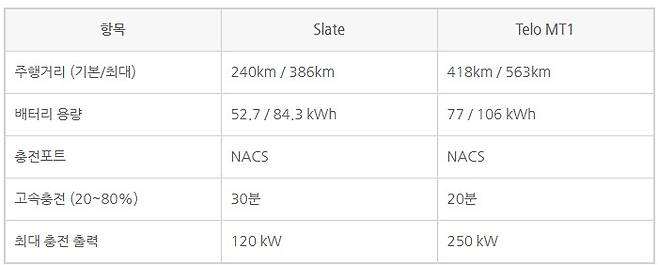 성능 및 배터리: Slate는 ‘기초형’, Telo는 ‘고성능 소형 EV’