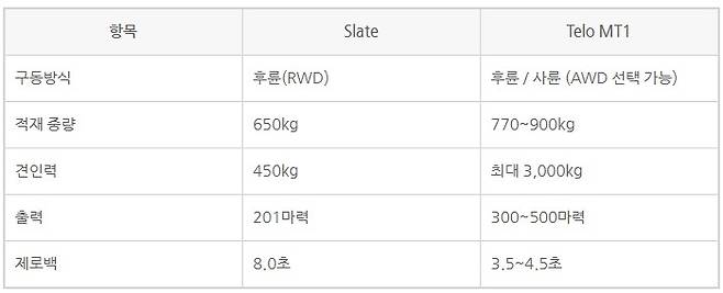 Slate는 기본적인 운송에 초점을 맞췄다면, Telo는 전기 픽업에서 기대할 수 있는 고성능까지 제공한다.