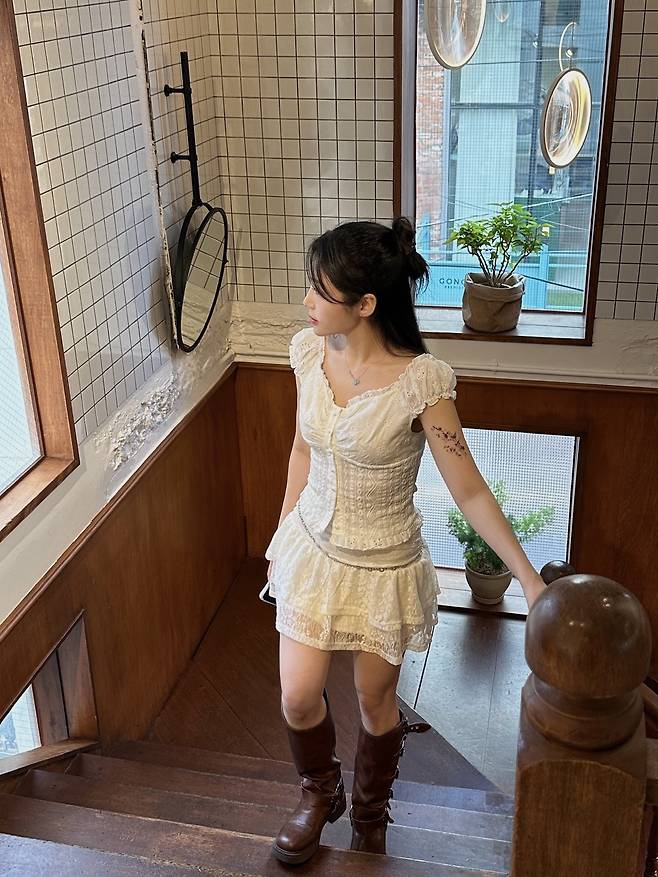 🪄 Look 1. 보헤미안 무드의 레이스 화이트 스커트 코디