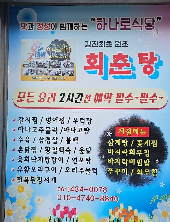 강진으로 택시타고 올때 기사님이 너네가 예약한 식당 다 읊어봐라(기사님 완전오지랍) 해서 하나로식당 회춘탕이라 했더니 정말 잘 골랐다며 감탄하시는것만 봐도 알 수 있다.