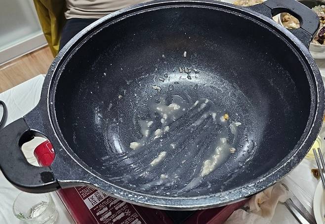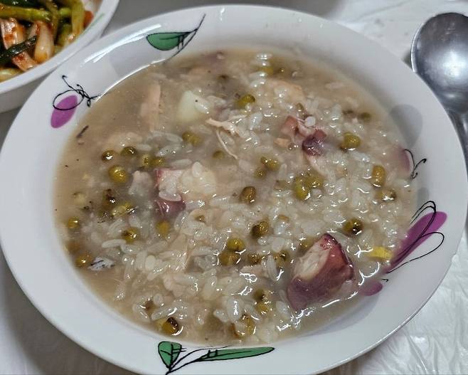 먹고남은 국물엔 찹쌀녹두밥을 넣고 끓여서 죽으로 마무리. 맞은편에 계신 해설사님께서 찹쌀녹두밥만으로도 맛있다고 미리 맛보라고 해서 슴슴한 녹두밥 한숫갈 맛보고 나머지는 투입해서 죽으로 끓였다.