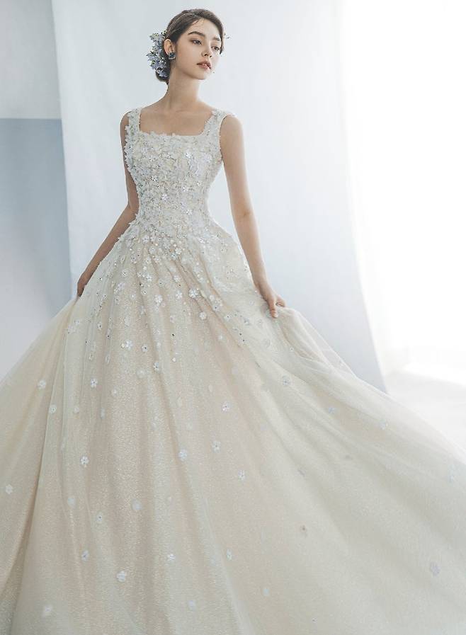 • “꾸민 듯 안 꾸민 듯” 꾸안꾸 스타일을 선호한다면 이 플라워 신상 웨딩 드레스 강추! 스퀘어넥 X 슬리브리스 조합은 도시적인 세련미를 뿜뿜 뽐낼 수 있지! 😎
