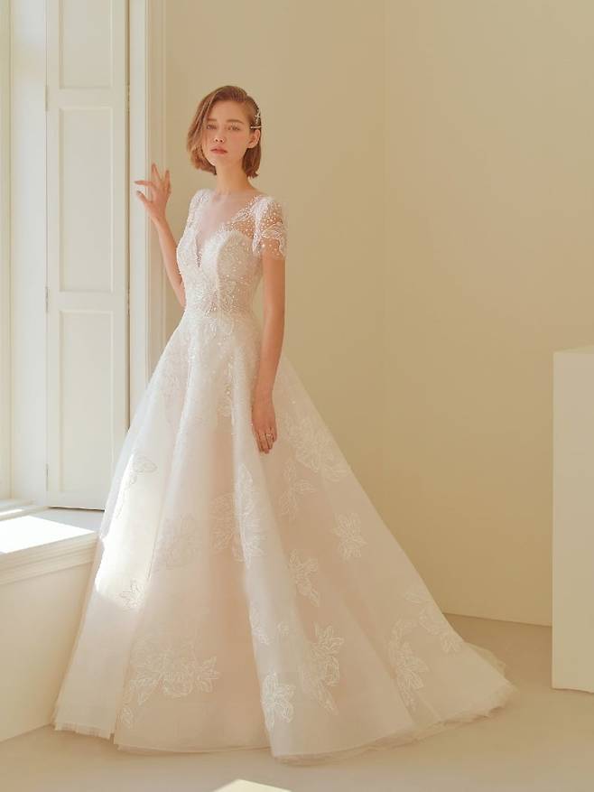 • 꽃 장식에 핑크빛 컬러가 더해지니 딱 “봄의 여신” 그 자체! 🌸 봄 시즌 스몰 웨딩 드레스로 완전 찰떡일 것 같아! 드레스 보자마자 심쿵사… 💘