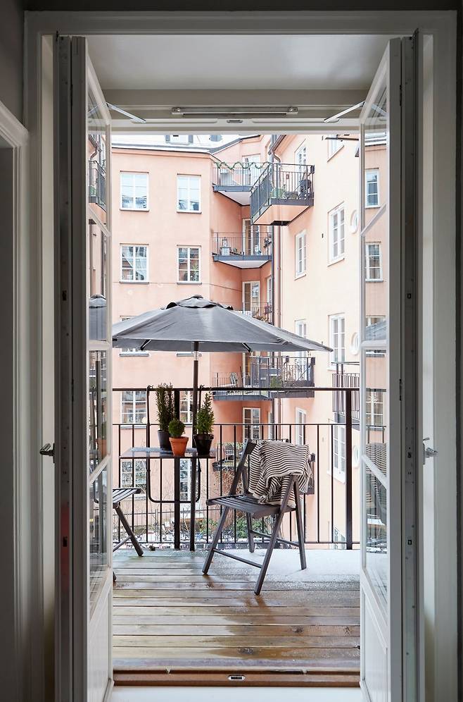 작은 원룸에 야외 발코니까지? 보기 드문 구조지만 이 집에는 실제로 주방 옆 발코니가 있어 환기뿐만 아니라 바비큐나 티타임 공간으로 활용 가능하다. 도시의 원룸이라도 구조를 잘 살리면 라이프스타일이 완전히 달라질 수 있다는 점을 보여준다.