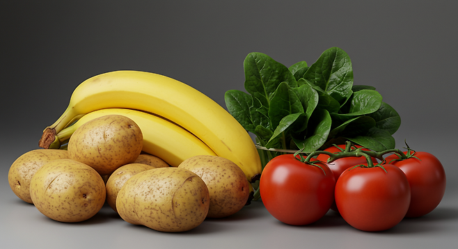 - 칼륨이 풍부한 바나나, 감자, 시금치, 토마토를 자주 섭취하세요.