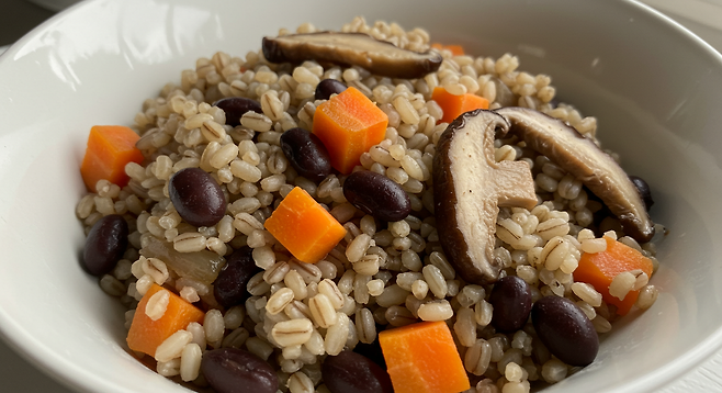 잡곡밥은 식이섬유가 풍부해 콜레스테롤 수치를 낮추고, 칼륨이 풍부한 검은콩은 나트륨 배출을 도와 혈압 관리에 효과적입니다.