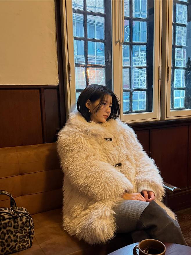 사진 속 임현주 씨는 부드러운 질감이 느껴지는 풍성한 흰색 퍼 코트를 입고 창밖을 응시하며 독보적인 아우라를 뽐내고 있는데요.
