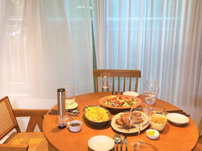 거실이 넓어지니 자연스럽게 손님 초대 횟수가 늘어나더라고요...!! 15평 오피스텔에 살 때도 손님을 자주 초대했지만 메뉴 퀄리티는 지금 집에 온 뒤 급상승하게 되었어요(?!)