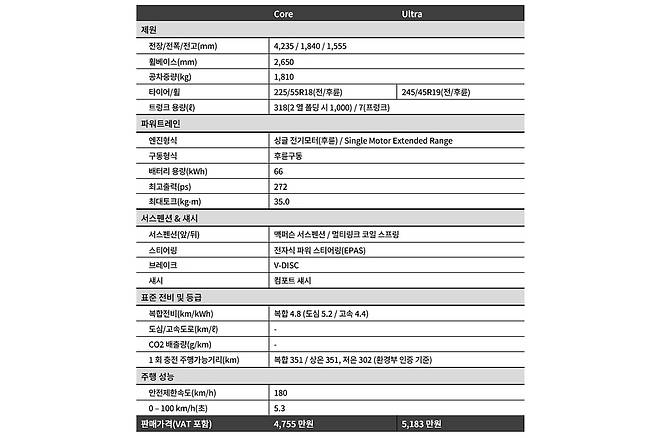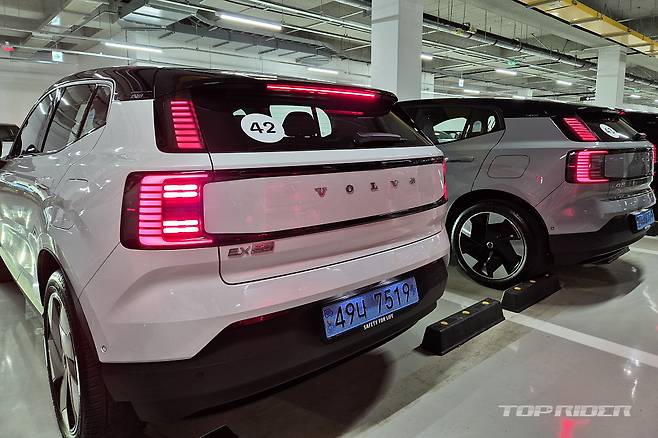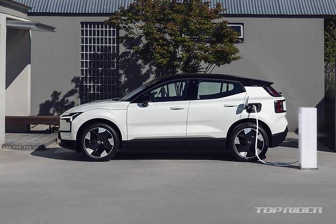 볼보 EX30은 후륜 기반 싱글 전기모터와 66kWh 리튬이온 배터리팩을 통해 최고출력 272마력, 최대토크 35.0kgm를 발휘한다. 공차중량 1810kg, 복합 주행거리 351km(도심 378, 고속 318), 저온 주행거리 302km(도심 287, 고속 320), 복합 전비 4.8km/kWh(도심 5.2, 고속 4.4)다.