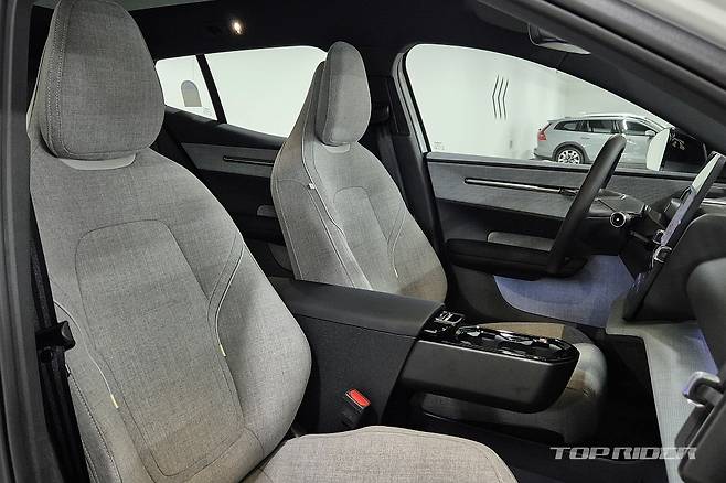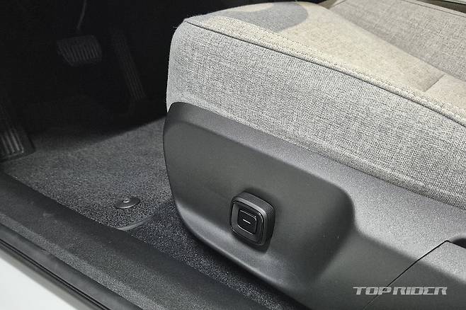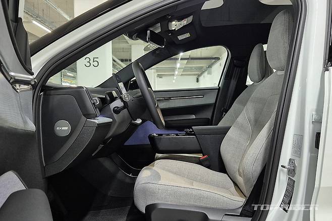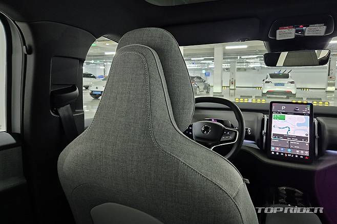 운전석에서의 시트포지션은 안정적이다. 전기차 전용 설계가 적용된 만큼 바닥만 높게 올라온 내연기관차 겸용 전기차와는 다른 느낌이다. 시트는 네모난 하나의 레버로 모든 조작이 가능한데, 의외로 직관적이다. 플라스틱과 패브릭이 혼재된 실내는 친환경 소재 구성 중 가장 만족스럽다.