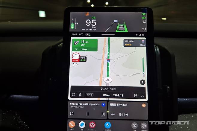 회생제동은 비교적 약하게 잡히는 설정으로 편안함이 강조됐다. 오히려 항속시 속도를 유지하려는 성향이 있다. 강한 브레이킹이 반복되는 상황에는 회생제동량을 늘릴 필요가 있겠다. 고속주행시 전력 소비량의 증가는 비교적 안정적이다. 또한 배터리 30% 미만에서도 리니어하게 준다.