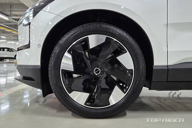 일상주행에서의 승차감은 부드러운 편이다. 볼보에서는 섀시 셋업에 따라 다이내믹, 투어링 등으로 부르는데, EX30 국내 모델에는 컴포트 섀시가 적용된다. 울트라 트림 기준 245/45R19의 굿이어 이피션시 그립 퍼포먼스 SUV 타이어는 밸런스가 좋아, 횡그립과 종그립 모두 만족스럽다.