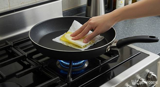 이는 프라이팬 코팅에 '오일 코팅'을 해주는 것이다. 얇게 펴진 기름이 프라이팬 표면에 보호막을 형성하고, 코팅이 프라이팬에 눌러붙거나, 혹은 벗겨지는 현상을 예방해줄 수 있는 좋은 방법이다.
