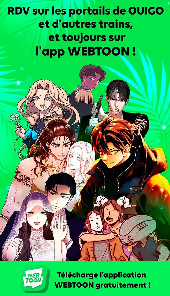 [엠투데이 이정근기자] 네이버웹툰이 7월 1일부터 프랑스 고속열차 테제베 이누이(TGV INOUI)와 저가 고속철 위고(OUIGO)에 오리지널 웹툰 15편을 전용 콘텐츠로 제공한다. 테제베에서는 모바일이나 PC로 기차 내 전용 네트워크 연결 시 자동으로 연결되는 플랫폼을 통해 승객들에게 다양한 콘텐츠를 제공하고 있는데 여기에 웹툰이 추가되는 것은 처음이다.