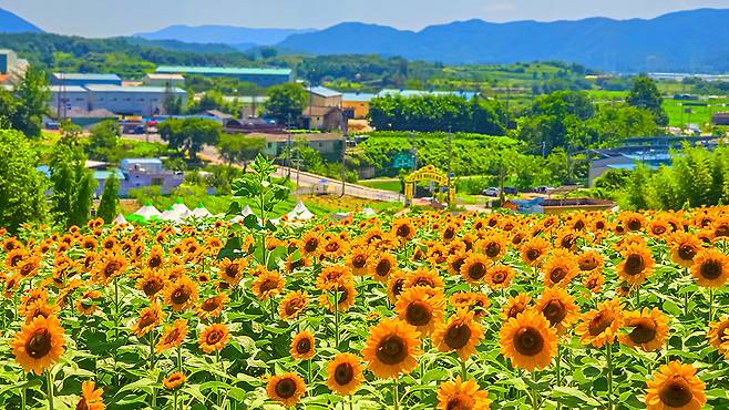 해마다 7월이면 노랗게 물든 해바라기와 형형색색 백일홍이 만개하며 마을 전체가 꽃으로 물든다. 여름의 한가운데, 이 특별한 풍경 속으로 들어가보자.