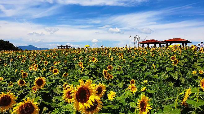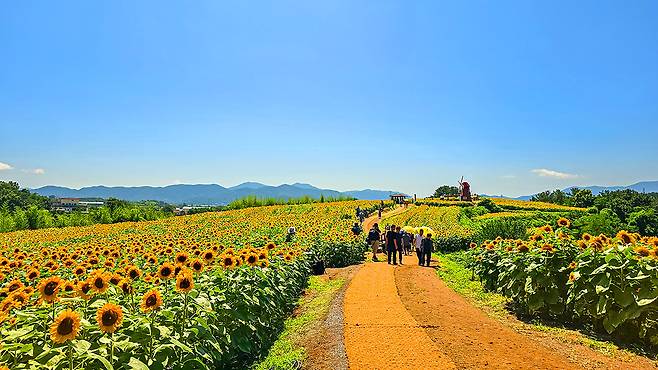 1단지에는 해바라기가 끝없이 펼쳐져 여름 햇살과 어우러진 노란 물결이 장관을 이루고, 2단지에서는 붉고 분홍빛의 백일홍이 만개해 또 다른 감동을 선사한다.