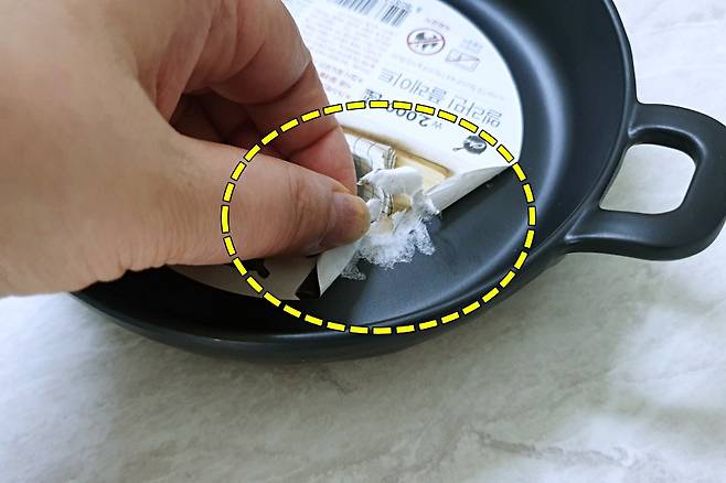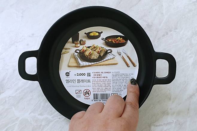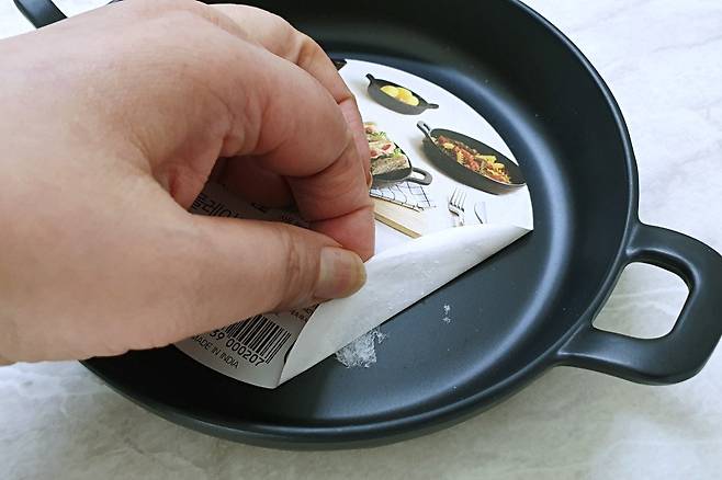 검은색 접시가 필요해서 하나 구매했는데요. 접시 중앙에 스티커가 붙어 있어요.